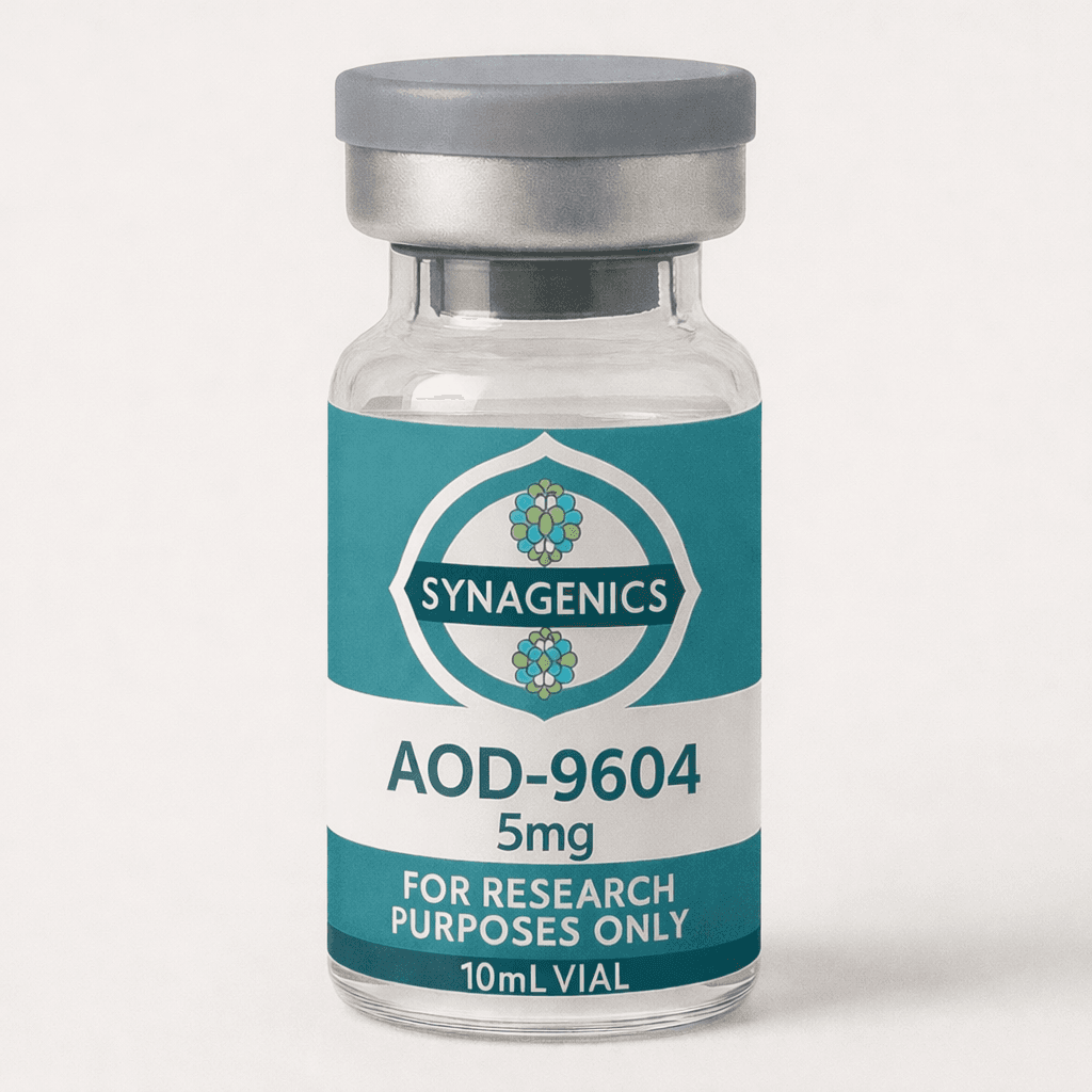 AOD-9604 is a synthetic research peptide studied for its role in metabolic signaling and lipid-related pathway activity. It is commonly referenced in controlled research environments examining energy regulation and peptide-driven cellular communication.