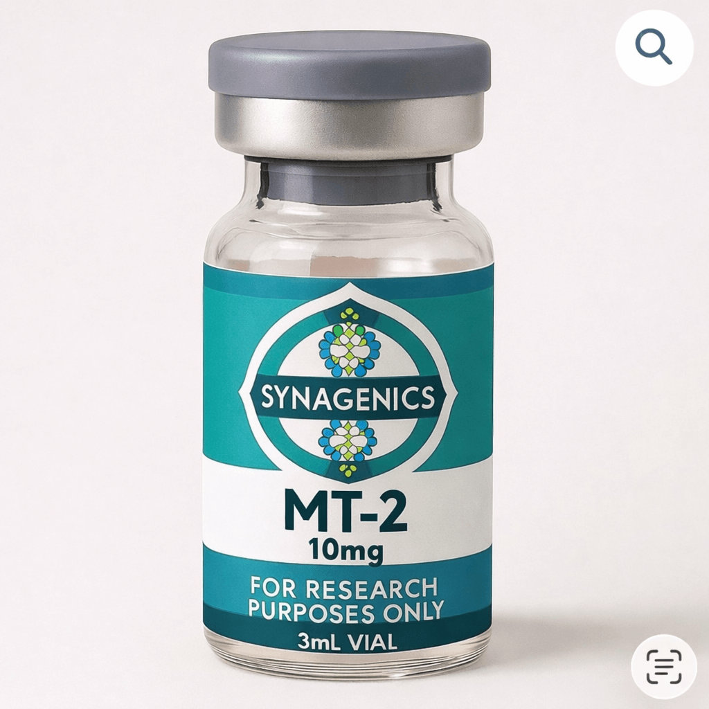 MT-2 is a lyophilized research material supplied for analytical, observational, and investigational use in controlled settings. This catalog item is presented as part of the Synagenics research collection and is intended for product identification, handling review, and reference-based evaluation.